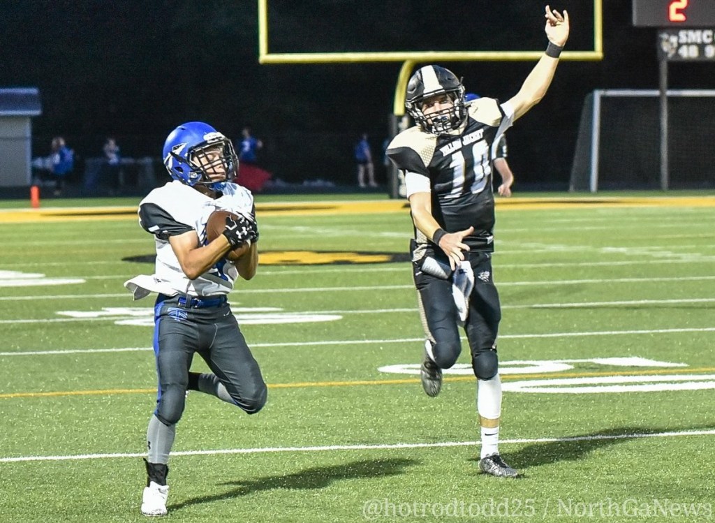 The 28-24 halftime lead for the Indians held up, with the defense pitching a second-half shutout. Towns County head coach John Cornett was ejected from the contest in the third quarter as the team was ahead 34-24. By the end of the quarter, Towns held a 48-24 advantage, and scored once more in the final quarter.