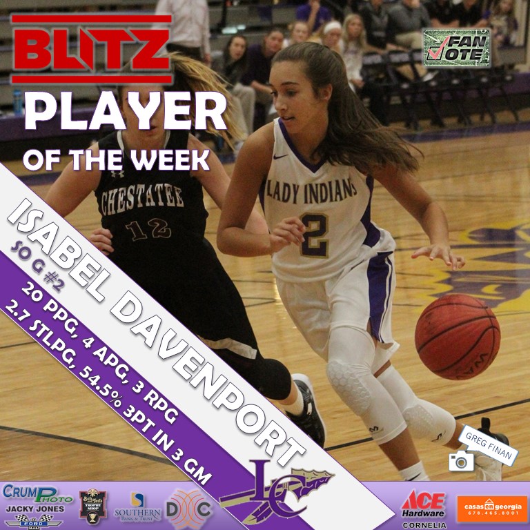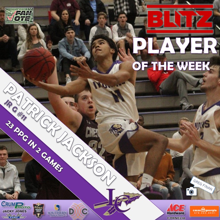 Lumpkin County showed up for the voting in the first Fan Vote Player of the Week of the 2018-19 basketball season. The top boy and girl in voting both came from Lumpkin, as junior Patrick Jackson and sophomore Isabel Davenport earned the honors. BLITZ picks for both boys and girls were Dawson senior Luke Chism and Banks junior Heather Vaughan, respectively.