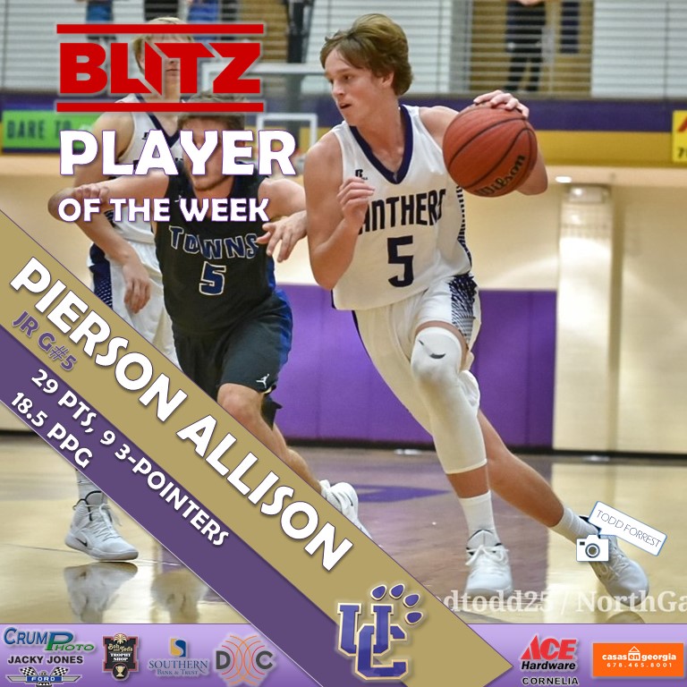 Pierson Allison slid right over from football to basketball and appears to be in top form already. In his last game against Towns County, the junior guard drilled nine 3-pointers, a school record. He finished the game with 29 points and averages 18.5 per contest so far.