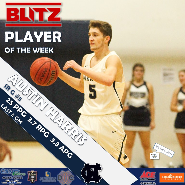 A pair of senior guards were named BLITZ Players of the Week for their efforts. Senior Austin Harris (White County) earned his second award of his career, while Nyah Williams (Tallulah Falls) earned the honors as well.