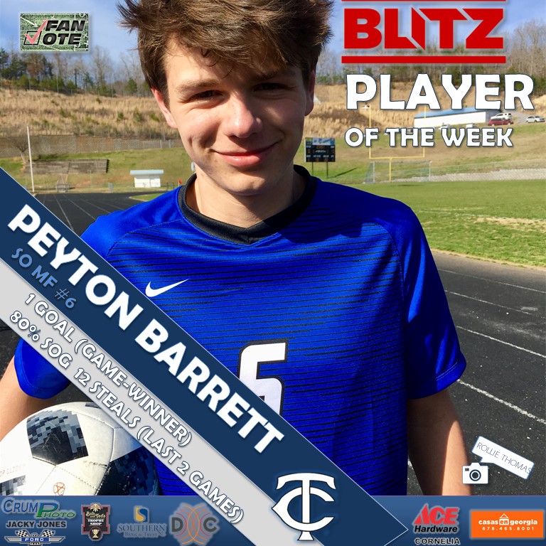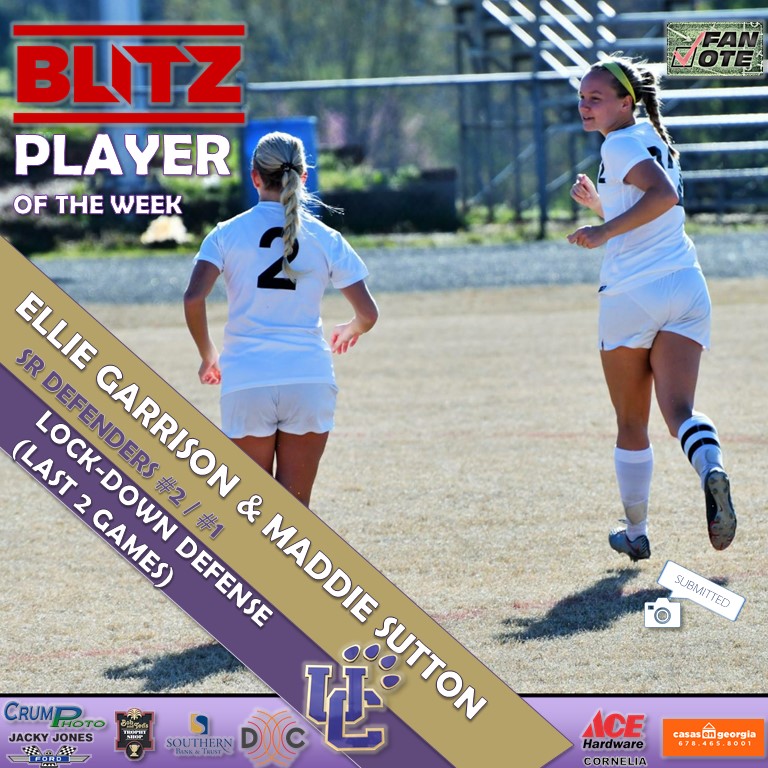21,238 votes were recorded in the FAN VOTE Player of the Week for Soccer. The top boy and girl vote-getter won the honors, while BLITZ chose one irregardless of voting outcomes. The top vote-getter was Towns County’s Peyton Barrett (8,192), while the girls winner was the second-highest vote-getter, Ellie Garrison & Maddie Sutton of Union (6,750 votes). BLITZ then chose Jefferson’s Margo Perry as a Player of the Week.