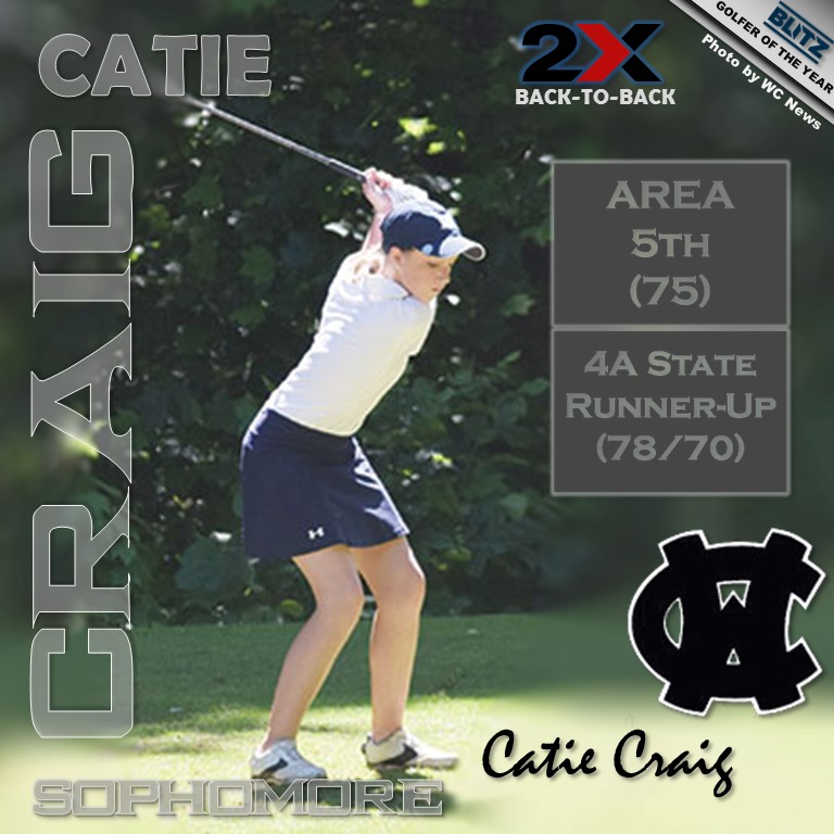 Back-to-Back! Catie Craig is the BLITZ Girls Golfer of the Year for the second straight season after sharing it last year with sister Caroline. The sophomore missed going back-to-back as a state champion by just a single stroke, but nonetheless, she remains one of the top golfers in the state of Georgia.