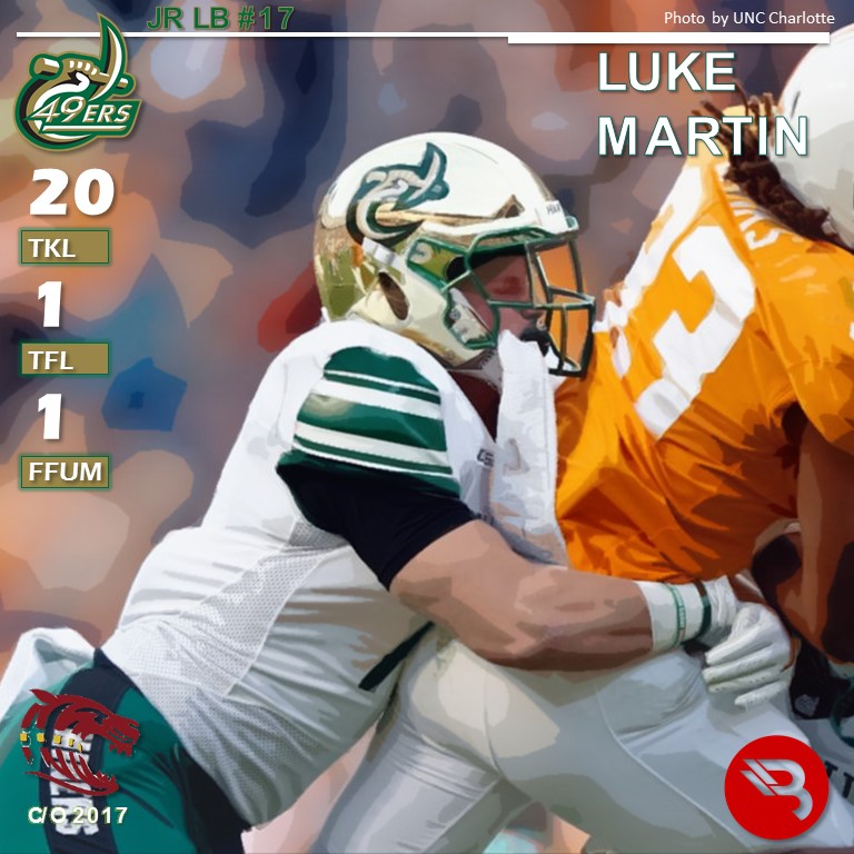 Luke Martin enters his third year of collegiate football, and second with the UNC-Charlotte 49ers program. After earning a pair of starts in 2018, the junior linebacker is seeking a breakout year as the Niners open play Thursday against Gardner-Webb at home.