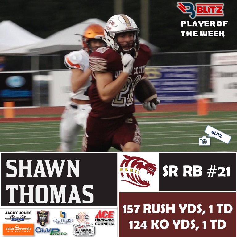 Shawn Thomas already showed signs last season of brilliance – albeit in a smaller role (yet still important). He’s no longer flying under the radar with the season-opening performance. Thomas set the tone immediately with the season’s opening kickoff against Habersham. He fielded the ball around the five-yard line and took it all the way in for the score. He finished with 124 kickoff return yards and the TD on special teams.