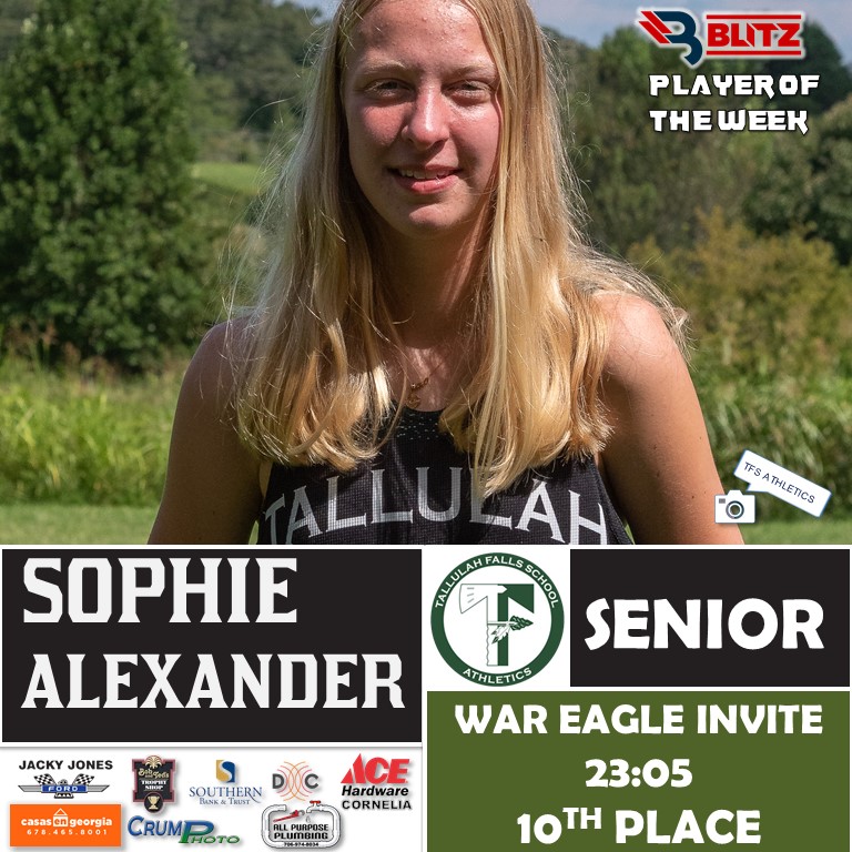687 votes came in support of local cross country runners, and it was Tallulah Falls senior Sophie Alexander (331) who recorded the most votes to earn the BLITZ Runner of the Week award.