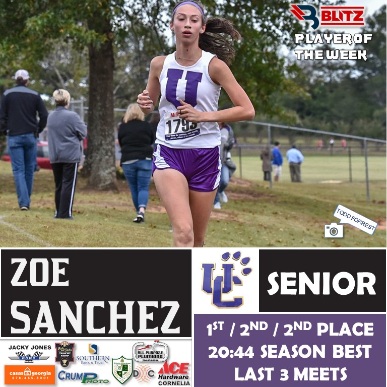 The BLITZ Runner of the Week public vote revealed Ellie Gearing (White County) was the winner after capturing 3,455 votes of the total 9,004. BLITZ then picked Union’s Zoe Sanchez as Co-Runner of the Week. Worth noting that Banks County’s Griffin Stephens had a strong showing in the votes, as he was on Gearing’s heels with 3,059 votes.