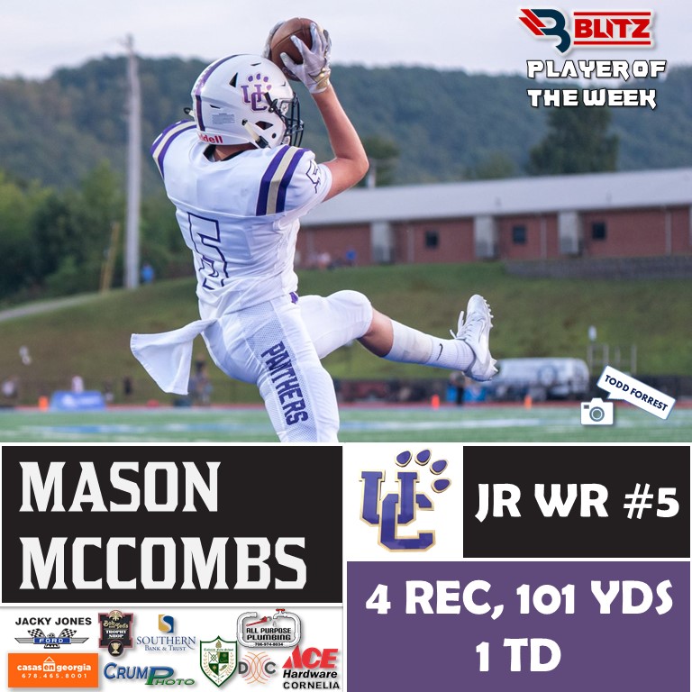 Union County’s Mason McCombs (Fan Vote) and White County’s J Ben Haynes (BLITZ Pick) were named Football Players of the Week following stellar performances in Week 4. McCombs (8,556 votes) took the majority of the 19,689 total votes, outlasting second-place finisher Sam Adams (6,948).