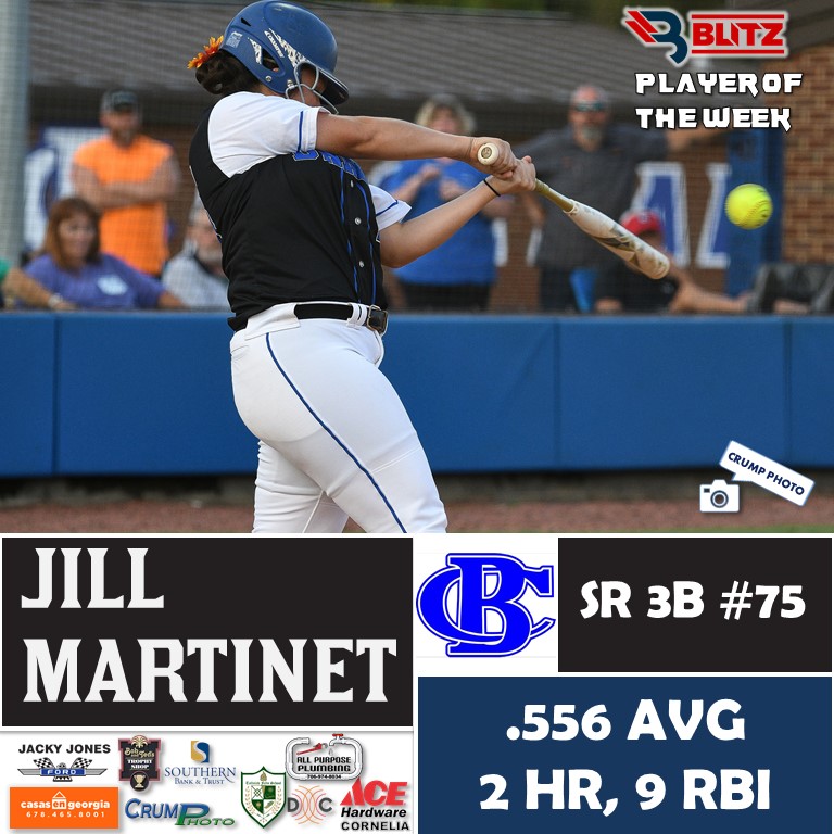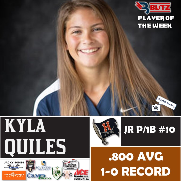 Habersham Central’s Kyla Quiles (4,332) dominated in the voting for Player of the Week, taking 55% of the total 7,883 votes. BLITZ then chose vote-getter runner-up Jill Martinet (Banks County; 1,690 votes) as Co-Player of the Week.