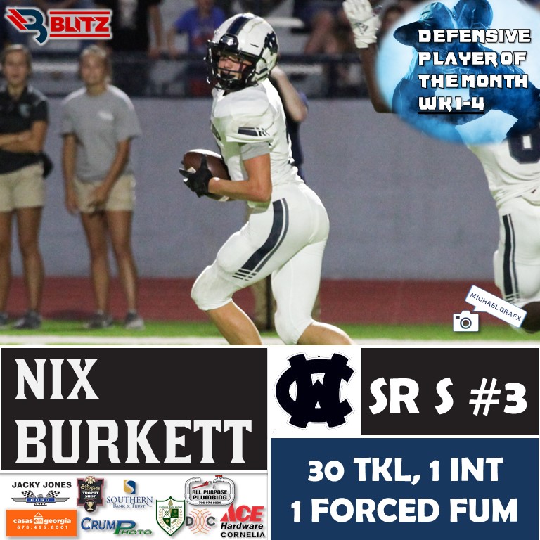 Nix Burkett has had a stellar senior season so far. Through the first 4 weeks of the season (3 games), he has racked up 30 tackles, an interception, and forced a fumble. Burkett has anchored the secondary for the Warriors, who are 2-1 on the season entering Week 5.