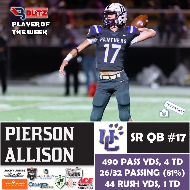 No matter the opponent, Pierson Allison did something only a handful of high school players have ever done. He slung the ball around the yard for 490 yards, connecting for 4 TD. That yardage puts him in the top 25 in single-game all-time in the state of Georgia.