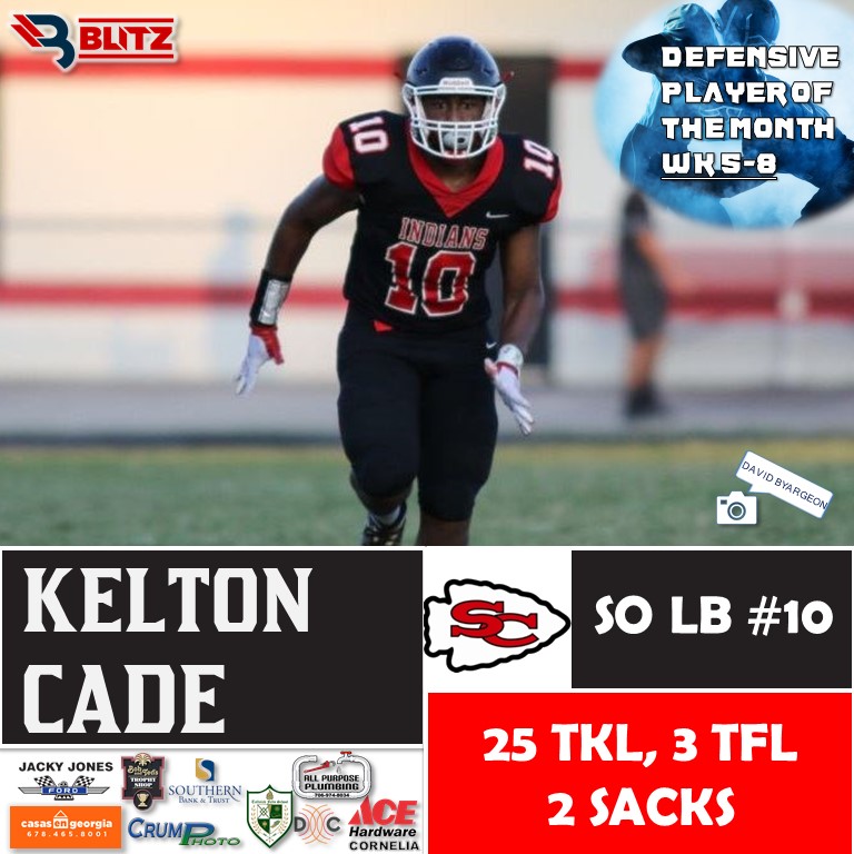 In the monthly poll, players from around our coverage area were considered based on one nominee per team who we felt put up solid defensive statistics. BLITZ then opens a public poll to determine the Player of the Month, and Cade captured 13,027 votes, fending off guys like Herndon (11,125), Jefferson’s Rem Maxwell (7.8K), Habersham’s Arian Curry (5.5K), Union’s Clayton Lester (2.7K), and many others. A total of 42,153 votes were logged.