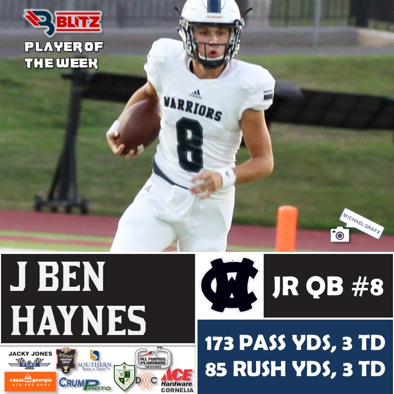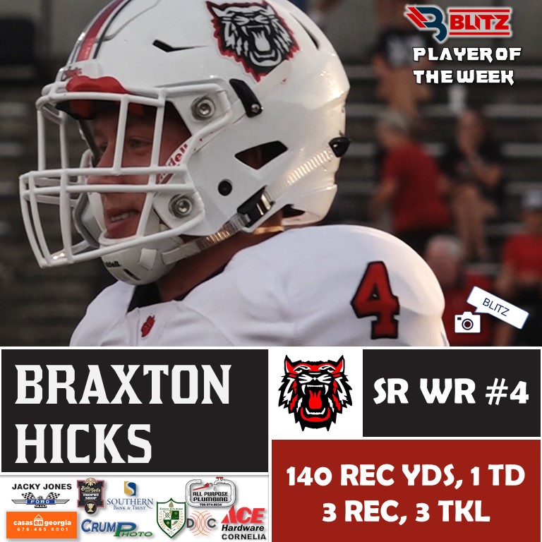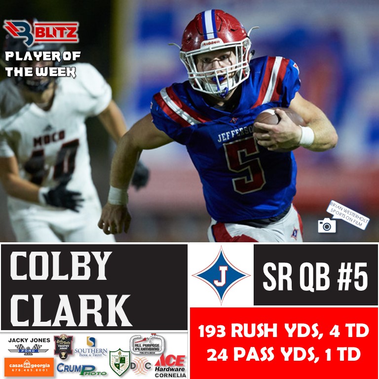 Jefferson’s Colby Clark earned the Fan Vote for Player of the Week, capturing 4,375 votes, edging out Rabun’s Braxton Hicks (2,774). There were a total of 9,424 votes. Along with Clark, BLITZ picks both Hicks and White County’s J Ben Haynes as Co-Players of the Week.