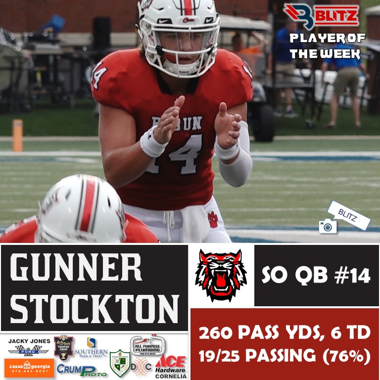 Stephens County’s Gamarion Carter (4,129 votes) took the majority of the 8,962 total public votes to earn BLITZ Player of the Week honors. BLITZ then named Rabun’s Gunner Stockton co-POW.