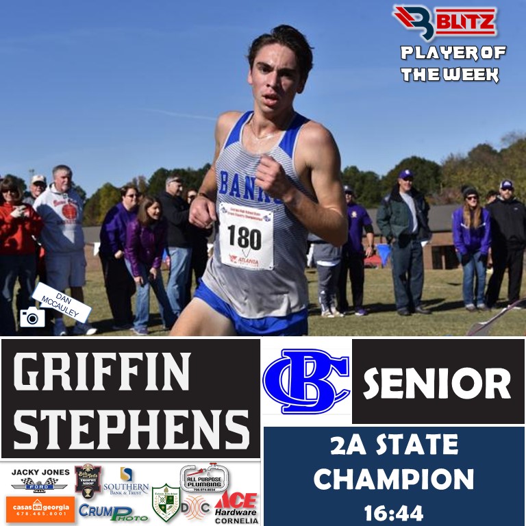 Banks County senior Griffin Stephens earned Runner of the Week honors for a second straight week after logging 2,949 votes out of 5,577 in the Fan Vote. He beat out Commerce freshman Paden Bell (2,319).