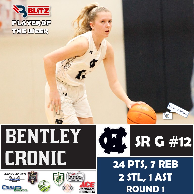 Bentley Cronic (White County) & Marlie Townley (Dawson) earned Player of the Week honors. Cronic took the Fan Vote with 4,357 votes out of a pool of 12,194. BLITZ then chose Townley as Co-POW.