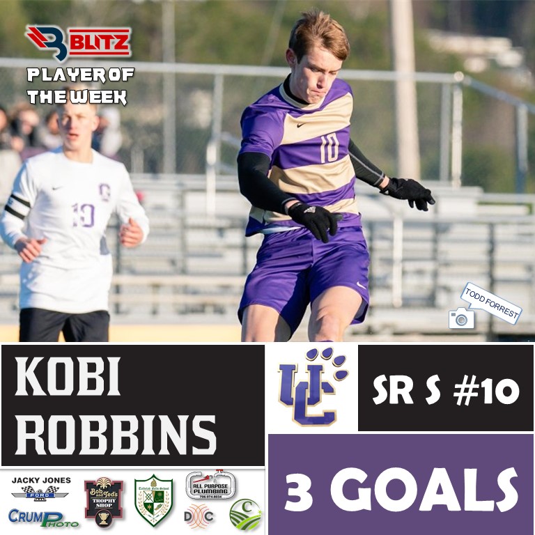 First off, Kobi Robbins we knew was going to be the go-to scorer after the defending state runner-up Panthers lost Brian Smith last year to graduation. But the senior striker is really looking every bit the player Smith was, and put that on display with a hat trick last week with 3 goals. This is Robbins’ first Player of the Week award.