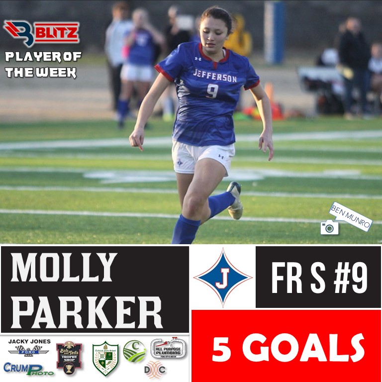 Jefferson has another new star in freshman striker Molly Parker. Parker earns Player of the Week honors after finding the net 5 times in the opening action for the Lady Dragons. This is her first Player of the Week award.