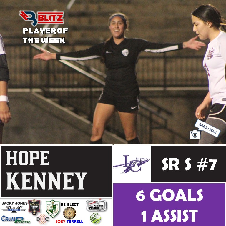 Hope Kenney earns her third Player of the Week award of her career, as the reigning Player of the Year continues to re-write history. The Lady Indians’ senior striker scored 6 goals and added an assist last week, and is inching closer to that illustrious mark of 100 career goals that few have ever reached.
