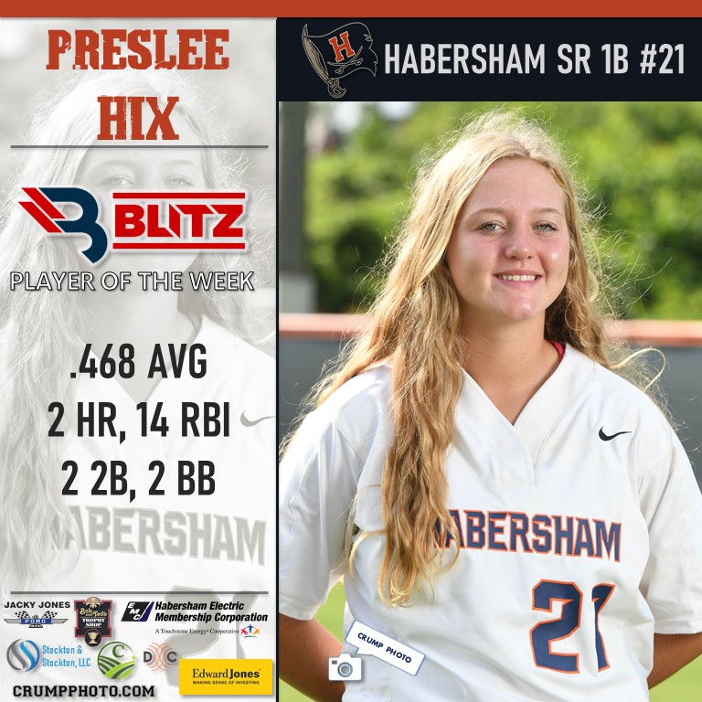 The Player of the Week fan voting totaled 74,631 votes. It was Amma Johnson of Lumpkin who earned the Fan Vote with 25,455 votes. BLITZ then picked Habersham’s Preslee Hix as Co-POW for her efforts.