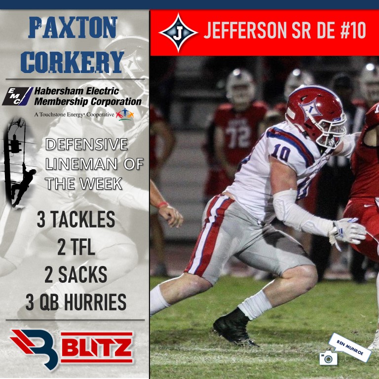 This week’s winners are OL Devin Sullens (White County) and DE Paxton Corkery (Jefferson).