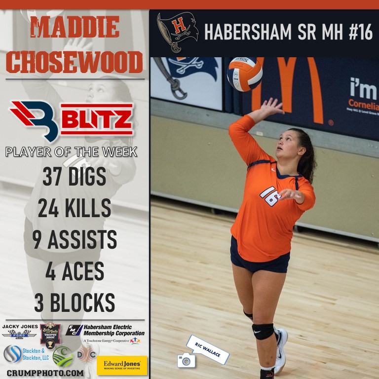 Volleyball Player of the Week honors go to White County’s Rusty Dye (Fan Vote) and Habersham Central’s Maddie Chosewood (BLITZ Pick). Dye led the fan voting with 16,910 of the 47,656 total votes.