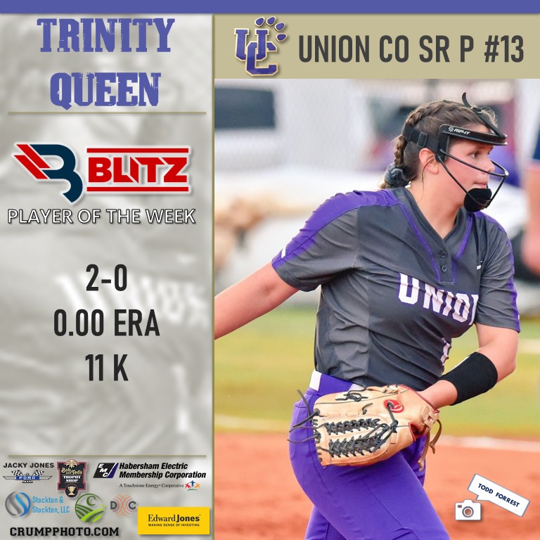 Union County senior star Trinity Queen earns her second POW award this season. The Panthers’ pitcher went 2-0 with a 0.00 ERA and struck out 11.