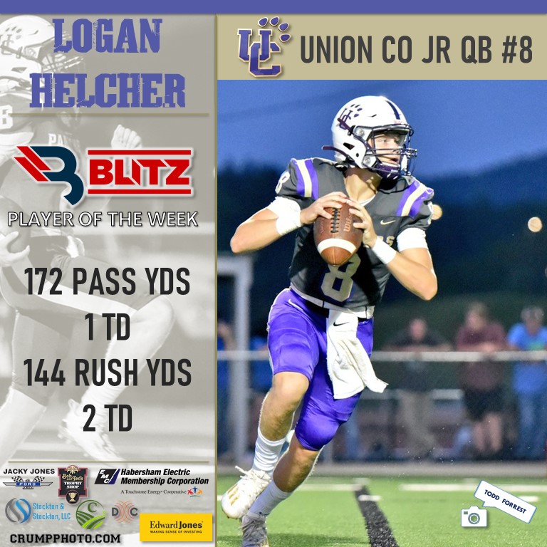 Logan Helcher has the distinction of being the fourth straight dual threat QB to emerge under coach Brian Allison at Union County. Helcher, a junior, continues a long line that includes Joseph Mancuso (Richmond), Cole Wright (Army), and Pierson Allison (Berry), all of who statistically were among state leaders each season.