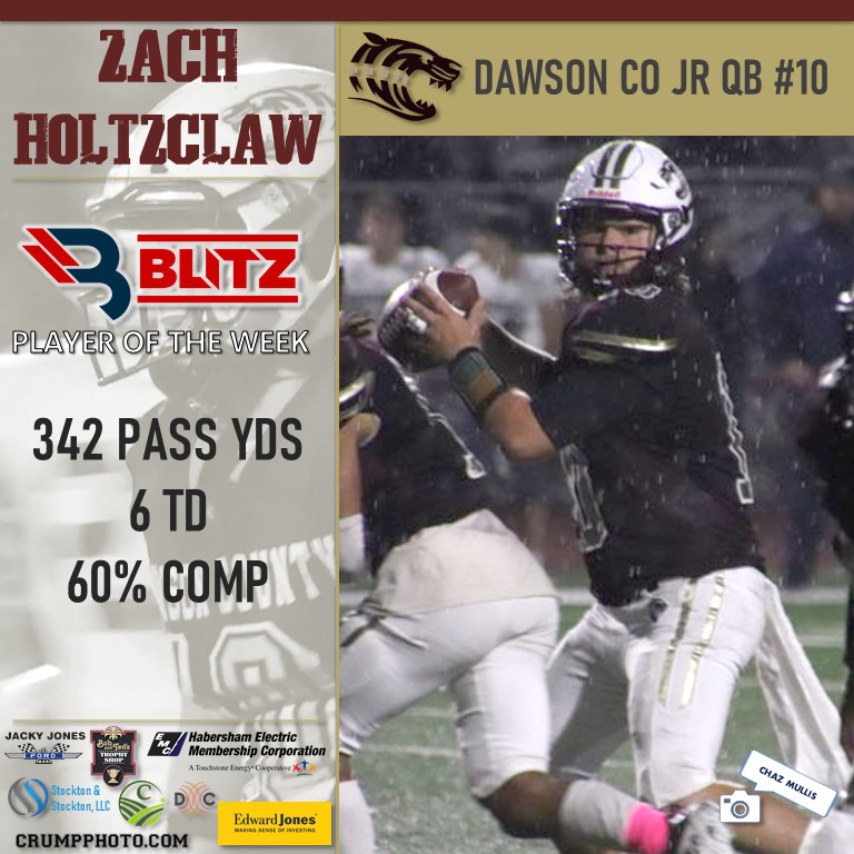 The Player of the Week Fan Vote notched 33,241 votes, with Habersham Central’s Patrick Tedder (16,120) taking the top spot. BLITZ then picked both Gunner Stockton (Rabun) and Zach Holtzclaw (Dawson) as Co-POW. For what it’s worth, Dawson’s Dakohta Sonnichsen (12,177) piled up some votes as well, but came in second.