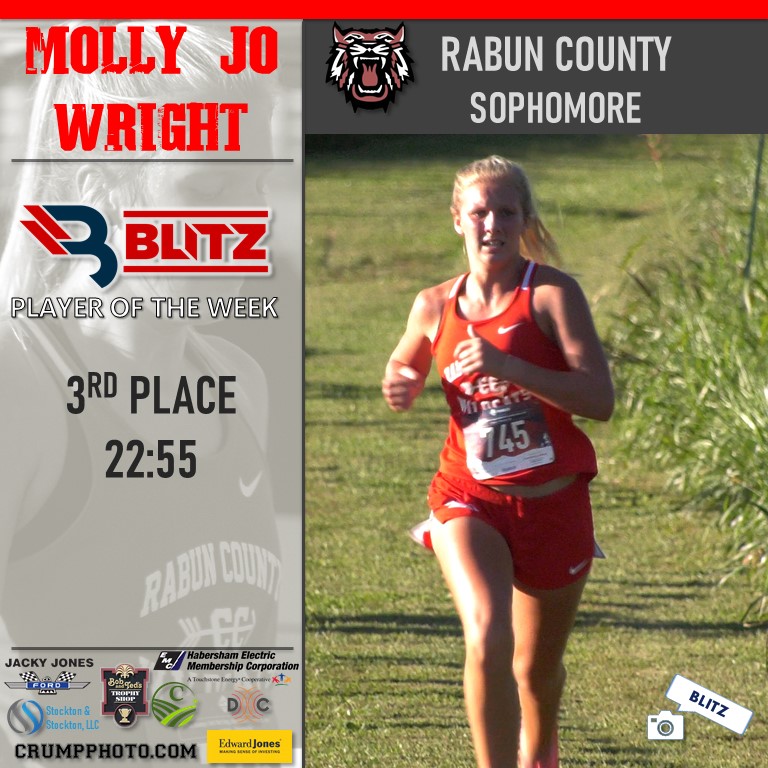 The Runner of the Week fan voting totaled 2,231 votes. Rabun County’s Molly Jo Wright (1,125 votes) claimed the Fan Vote. BLITZ then picked Lumpkin County’s Abbie Hilchie as Co-Runner of the Week.