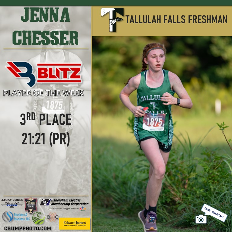 The Runner of the Week fan voting totaled 38,552 votes. Tallulah Falls’ Jenna Chesser (15,496 votes) claimed the Fan Vote over second place vote-getter Lance Kelley (13,211). BLITZ then picked Jefferson’s Matthew Schroeder as Co-Runner of the Week.