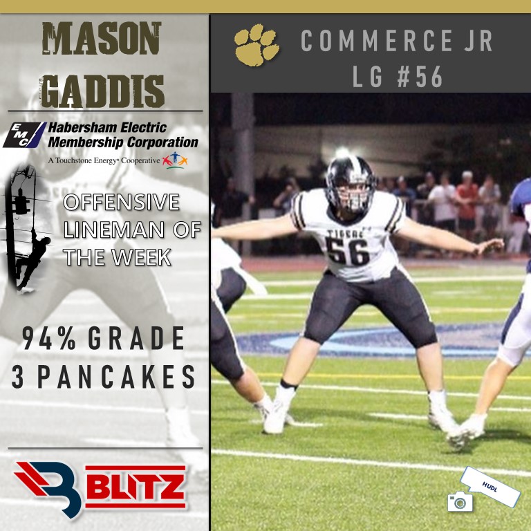 This week’s winners are Mason Gaddis (Commerce) for the O-Line, and Aaron Helton (Union) for the D-Line.
