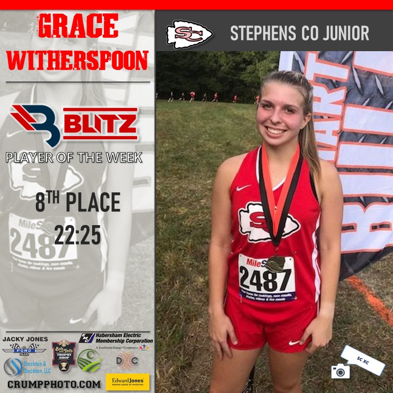 Grace Witherspoon has been having an outstanding career for Stephens County to this point. The junior came in 8th place at a Franklin County meet last week, and clocked in at 22:25. This is Witherspoon’s first Runner of the Week award.