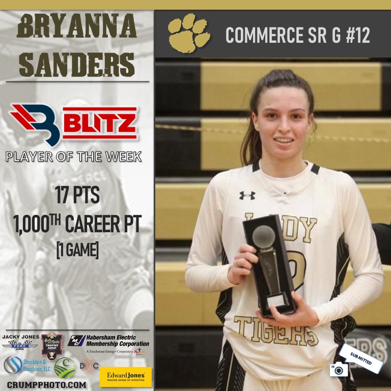 Commerce senior guard Bryanna Sanders has long been a playmaker. The Lady Tigers standout scored 17 points in a game last week, eclipsing 1,000 career points in the process. This is Sanders’ second POW award of her career.