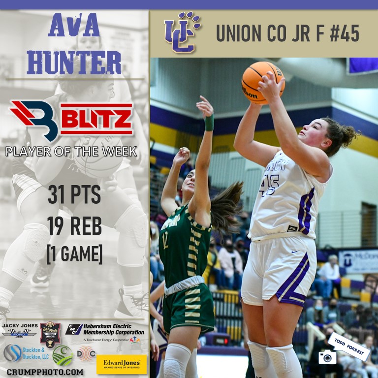 Ava Hunter is doing her typical damage – though last week was a special performance even by her standards. The junior post player led Union County with an incredible stat line in a win last week – 31 points and 19 rebounds. This is Hunter’s second career POW award.