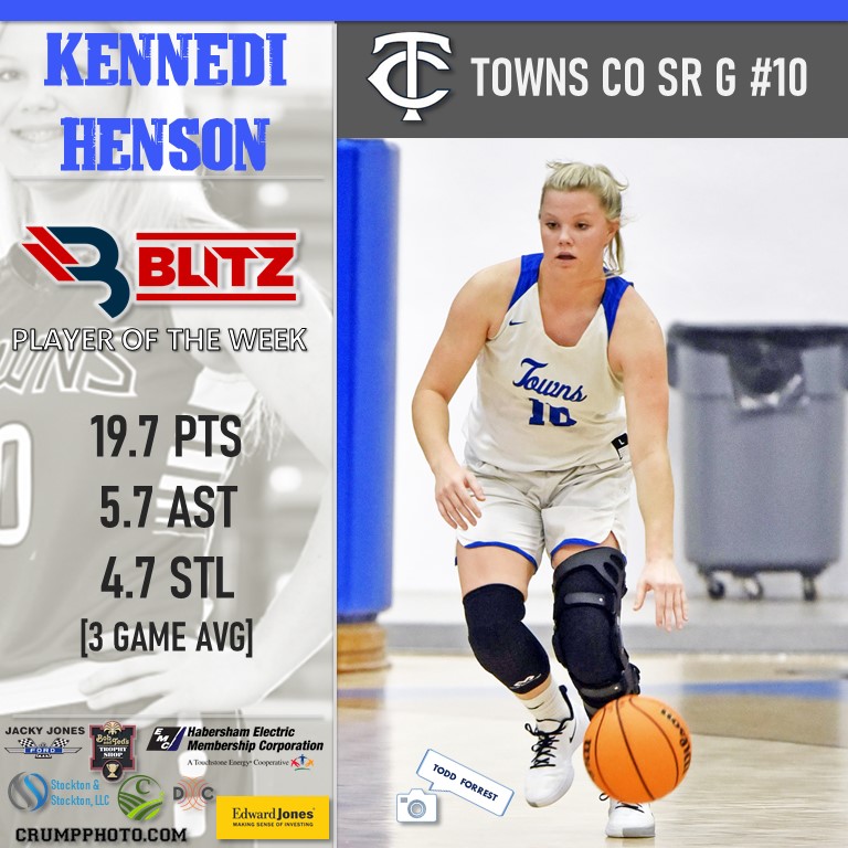 The Player of the Week Fan Vote for Girls Basketball Player of the Week tallied 36,848 votes, with Union County’s Ellie Cook tallying 14,136 to win the Fan Vote. BLITZ then picked Towns’ Kennedi Henson as Co-POW.