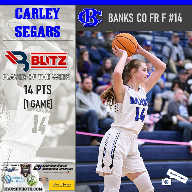 The Player of the Week Fan Vote for Girls Basketball Player of the Week tallied 14,601 votes, with Banks County’s Carley Segars tallying 5,029 to win the Fan Vote. BLITZ then picked Dawson’s Maddie Anglin as Co-POW.