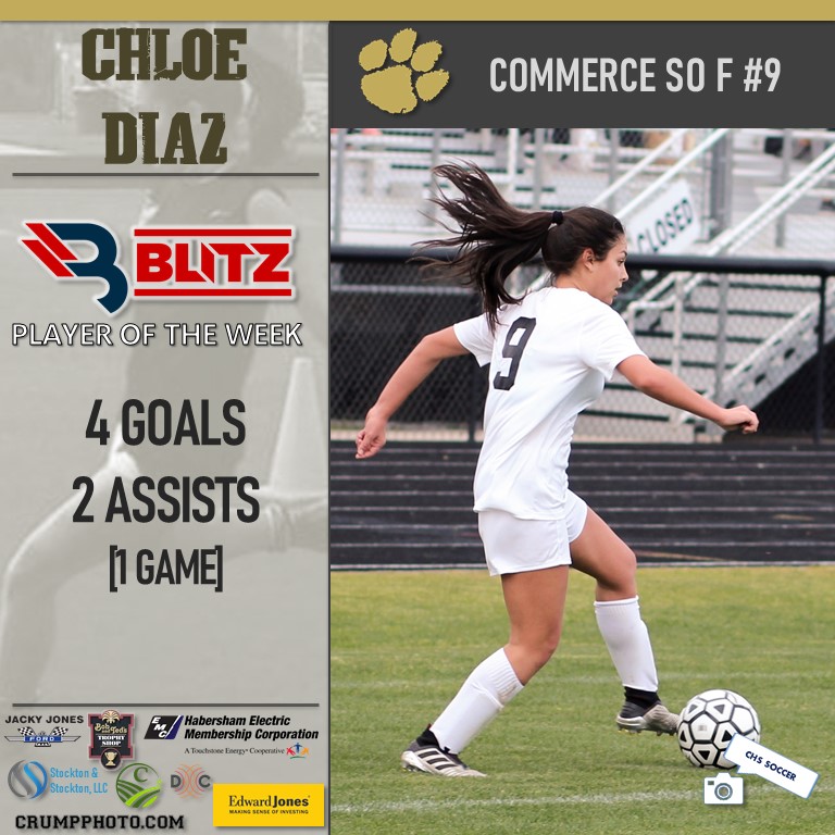 The Player of the Week Fan Vote for combined Girls/Boys Soccer Player of the Week tallied 42,180 votes, with Tallulah Falls’ Austin Ball tallying 17,027 to win the Fan Vote. BLITZ then picked Commerce’s Chloe Diaz as Co-POW.