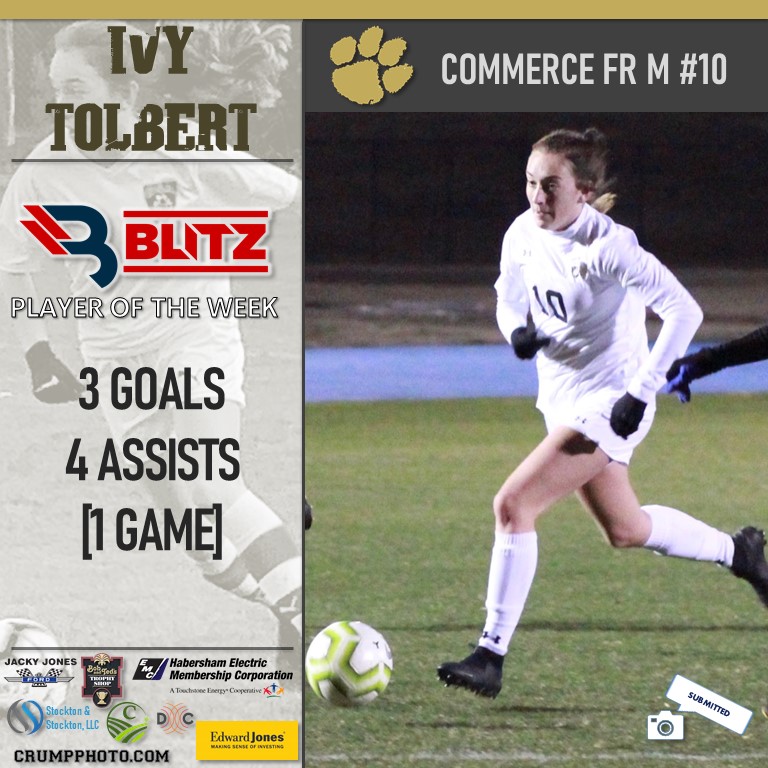 Freshman phenom Ivy Tolbert is off to a blistering start to her high school career. The midfielder/forward notched 3 goals and 4 assists in a single game last week, earning her first of many BLITZ POW awards to come.