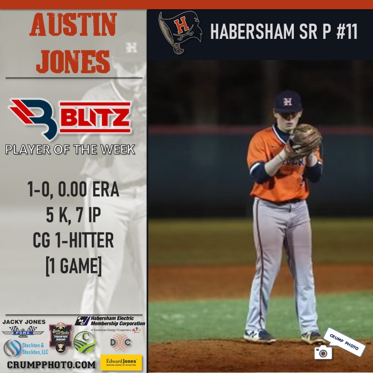 The Player of the Week Fan Vote for Baseball Player of the Week tallied 17,877 votes, with Habersham’s Austin Jones tallying 7,942 to win the Fan Vote. BLITZ then picked Union’s Zeke Swartz as Co-POW.