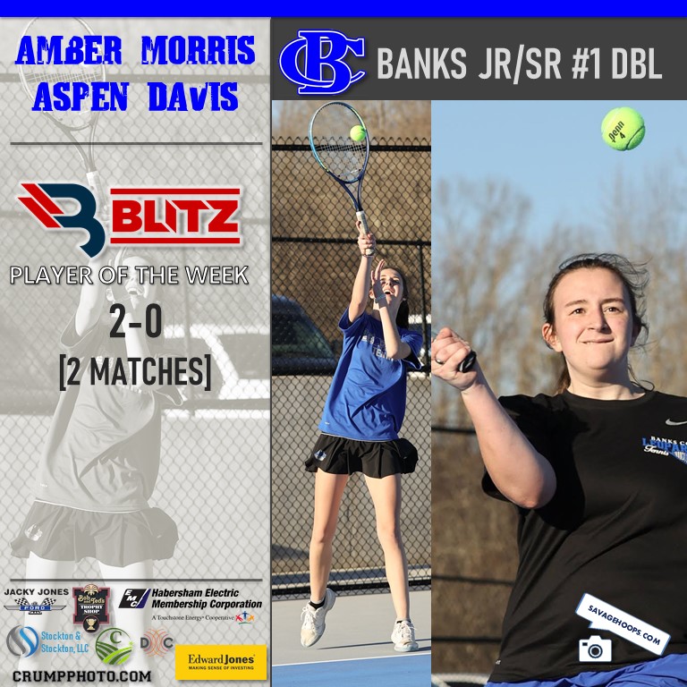 The doubles unit of junior Amber Morris and senior Aspen Davis won 2 matches last week at #1 doubles for the Lady Leopards! This is both Morris and Davis first POW awards.