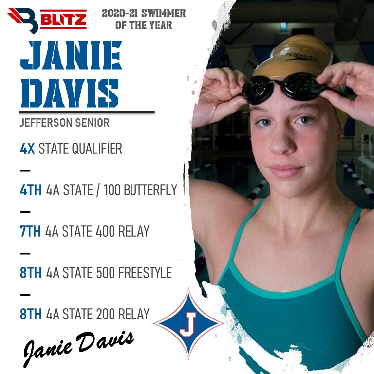 Janie Davis spends a lot of time in the water. That investment has paid off with an incredible senior year for Jefferson in which she qualified for state in four events, and finished top-10 in them all. That earns her the first-ever BLITZ Swimmer of the Year award.