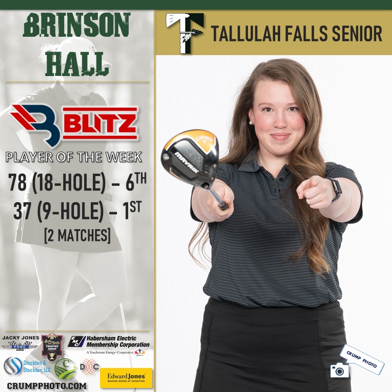 The Fan Vote for Golfer of the Week notched 6,569 total votes, with Garrett Horton of Rabun taking the lions’ share with 3,522. BLITZ then named Tallulah Falls’ Brinson Hall as co-Golfer of the Week.