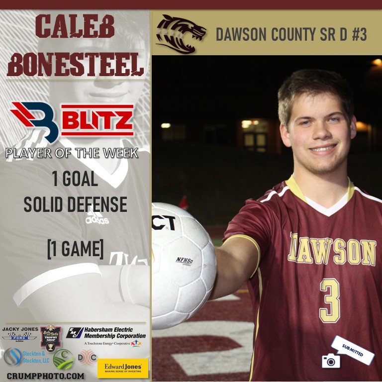 Dawson County senior Caleb Bonesteel earns his second career POW award after scoring a goal and playing solid defense last week for the Tigers.