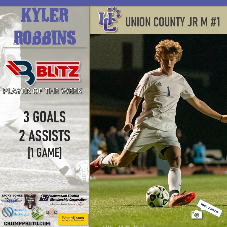 Kyler Robbins dropped in 3 goals and 2 assists in a star performance last week for the Union County Panthers. This is Robbins’ first POW award.