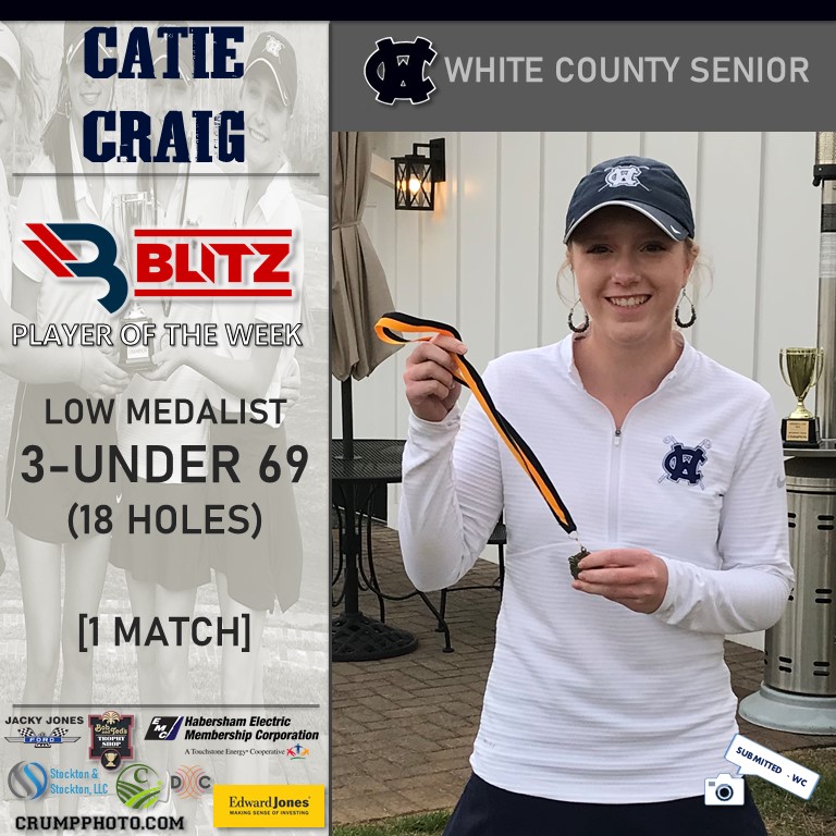 Catie Craig led the White County Lady Warriors to a 1st-place finish at the Valhalla Cup with a low medalist score of 3-under 69 (18 holes). This is the senior’s second POW award of the season.