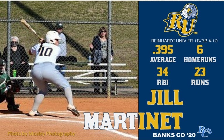 Jill Martinet knows a thing or two about fighting for her right to play. Even as a senior leader at Banks County in the Lady Leopards 2019 State Championship season, she felt the need to go out every day and win her job. That attitude went with her to Reinhardt University, where the freshman has more than earned her place in the lineup.