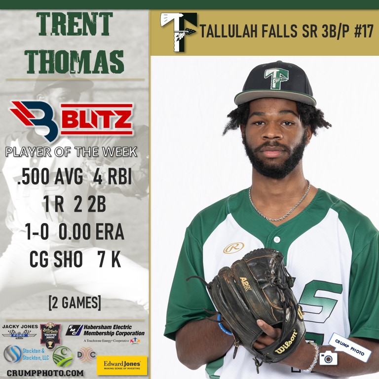 The BLITZ Baseball Player of the Week goes to Tallulah Falls senior Trent Thomas.