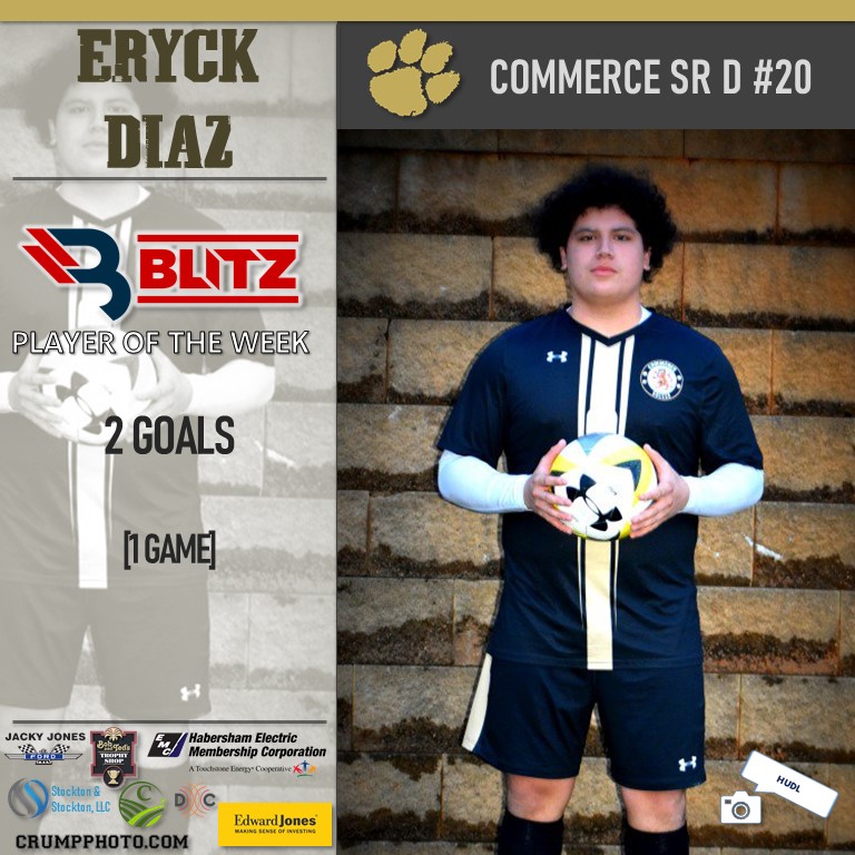 The Player of the Week Fan Vote for Boys Soccer Player of the Week tallied 48,694 votes, with Tallulah Falls’ Max Farris tallying 22,636 to win the Fan Vote. It was an epic voting battle, as Farris edged out Dawson County star senior Erick Sanchez, who logged 21,407. BLITZ then picked Commerce’s Eryck Diaz as Co-POW.