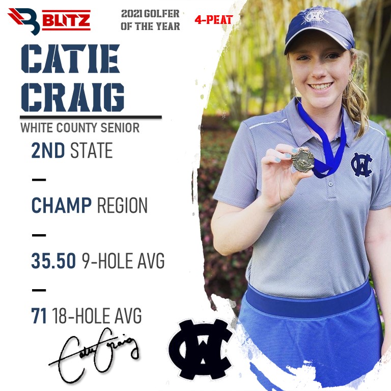 This marks the 3rd time there has been a tie awarded for Golfer of the Year, and Craig twice has been involved in that. It also marks the second time ever in any sport we have a 4-peat, as Craig has won it every season. The other incident was another White County great, Jenna Gearing, winning 4 cross country awards in a row. A Craig sister has been part of this award for the last 5 years. Jackson, meanwhile, makes for the first TFS golfer to win the award.