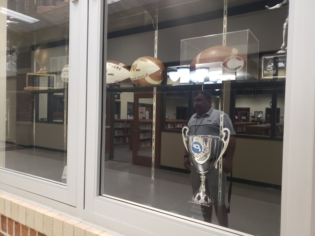 The BLITZ Cup resides at the winning school for the next school year after winning it. The trophy has a placard on the base in which the yearly winners are etched into it. The BLITZ Cup is designed by Bob & Ted’s Trophy in Clarkesville.
